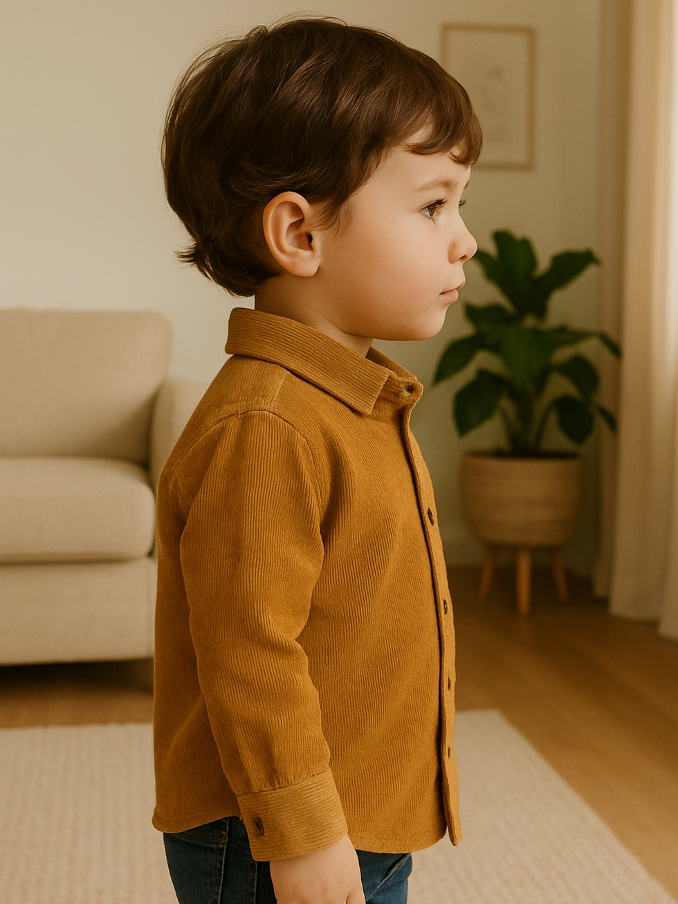 Crafted in soft, breathable cotton corduroy, this button-up brings both comfort and charm. Designed for everyday adventures, school days, or family outings, this versatile shirt pairs effortlessly with jeans, trousers, or even shorts.